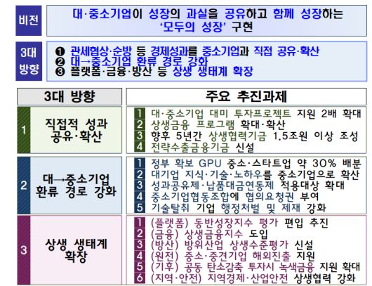아울러 "대기업의 해외투자 확대 등에 따른 수직형 납품구조의 변동, 중소기업 기술탈취 등 불공정행위, AI·플랫폼 등 신산업 대전환 같은 환경 변화는 기존 상생협력 정책의 혁신을 요구하고 있다"고 덧붙였다.