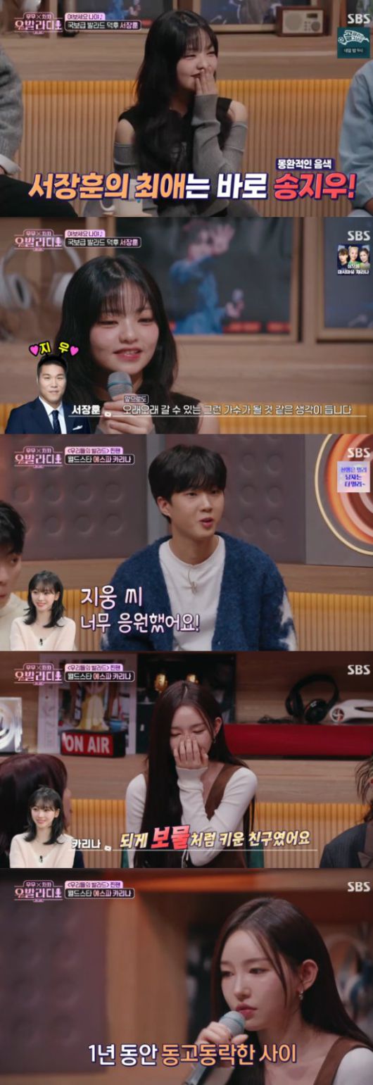 그리고 이날 서장훈과 카리나가 '우리들의 발라드'의 찐팬이었음을 고백하면서 전화를 걸어왔다. 서장훈은 자신의 원픽으로 송지우를 꼽으면서 "첫 무대를 보고 '우리들의 발라드'를 계속 봐야겠다는 생각을 했다. 목소리가 정말 유니크하고 좋다"고 말했다.
