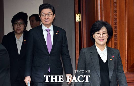 [더팩트ㅣ임영무 기자] 원민경 성평등가족부 장관(오른쪽)과 이억원 금융위원장, 정은경 보건복지부 장관이 21일 오전 서울 종로구 정부서울청사에서 열린 경제관계장관회의에 참석하고 있다.