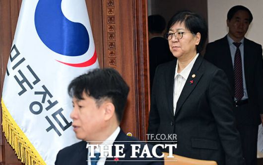 [더팩트ㅣ임영무 기자] 정은경 보건복지부 장관(오른쪽)이 21일 오전 서울 종로구 정부서울청사에서 열린 경제관계장관회의에 참석하고 있다.