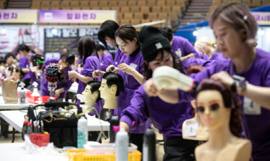서울 송파구 잠실실내체육관에서 열린 '2024 제8회 서울시 미용예술경연대회'에서 헤어부문 참가자들이 경연을 펼치고 있다. (사진=뉴스1) |