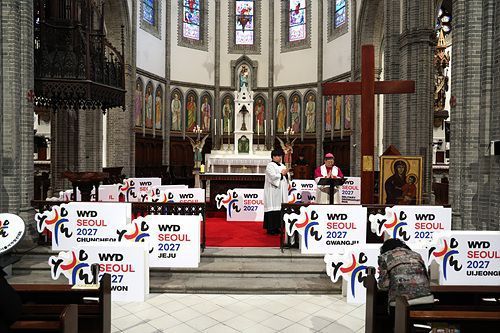 2027 서울 세계청년대회 조직위원장 정순택 대주교는 20일 오후 서울 명동대성당에서 열린 '세계청년대회 로고 조형물 축복식'을 통해 상징물 순례의 출발을 공식화했다.