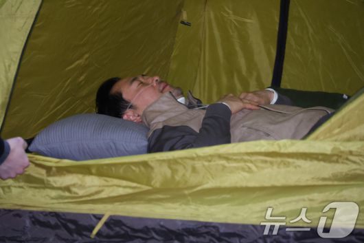 (서울=뉴스1) 신웅수 기자 = 단식 중인 장동혁 국민의힘 대표가 21일 서울 여의도 국회 로텐더홀에 마련된 단식 농성장에서 의료용 산소 발생기를 착용하고 있다. 2026.1.21/뉴스1phonalist@news1.krCopyright ⓒ 뉴스1. All rights reserved. 무단 전재 및 재배포, AI학습 이용 금지.