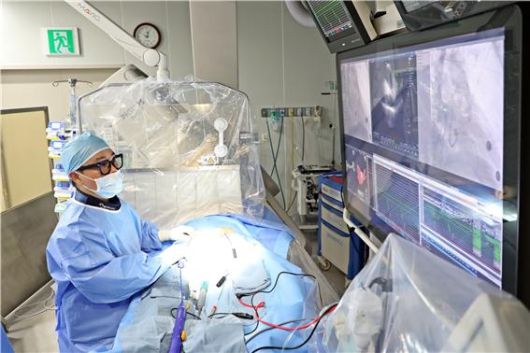 백용수 인하대병원 심장내과 교수가 펄스장 절제술을 시행하고 있다.[인하대병원 제공] |