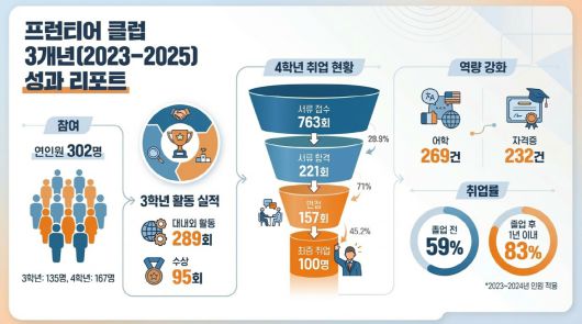 박상희 취업전략센터장은 "SMART 프런티어 클럽은 학생 개개인의 목표 직무에 맞춰 역량을 체계적으로 관리하고, 이를 실제 취업 성과로 연결하는 대표적인 취업 지원 모델"이라며 "앞으로도 대기업·공공기관 취업 지원을 더 강화해 학생들의 원활한 사회 진출을 적극 뒷받침하겠다"고 강조했다.