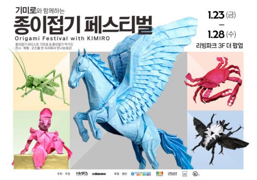 전시 존에서는 기미로 작가의 대표작 ‘페가수스’, ‘꽃게’ 등 고난도 창작 작품을 실물로 확인할 수 있다. 국내외에서 활발하게 활동 중인 다수 작가들이 종이 한 장으로 빚어낸 정교한 작품 세계를 감상할 수 있다. 체험 존에서는 작가들의 도면을 바탕으로 직접 작품을 완성할 수 있다.