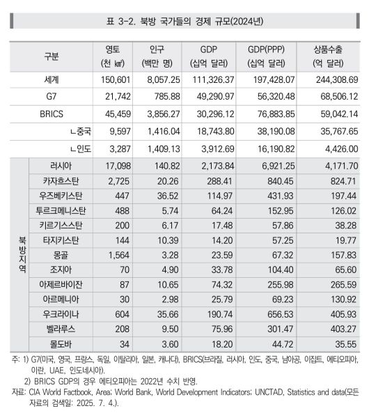 러시아 등 북방 국가 경제 규모 |