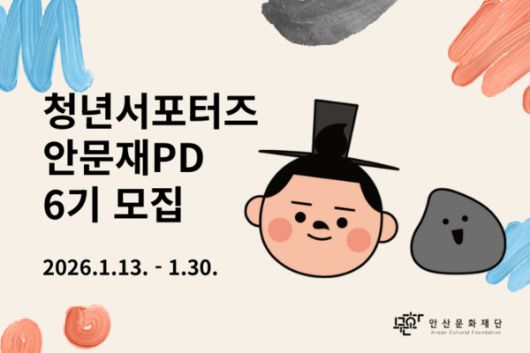 (안산=국제뉴스) 윤은중 기자 = 안산문화재단은 2026년 3월부터 11월까지 9개월간 재단 문화 사업 홍보 콘텐츠 제작에 참여할 청년 서포터즈 '안문재PD' 6기를 모집한다고 밝혔다.