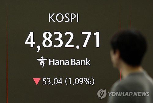 (서울=연합뉴스) 이민영 기자 = 코스피가 21일 하락 출발해 장 초반 4,820대를 나타내고 있다.
