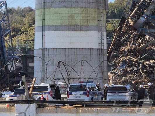 18일 오후 합동감식반이 경북 울산시 울산화력 붕괴 사고에 대한 정확한 원인 등을 조사하기 위한 합동감식을 하고 있다. 2025.11.18/뉴스1 ⓒ News1 박정현 기자 |