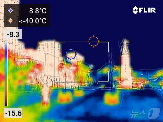 절기상 대한(大寒)인 20일 오전 서울 광화문광장이 한산한 모습을 보이고 있다. 열화상카메라는 온도가 높을수록 붉은색으로 나타나며 상대적으로 온도가 낮은 곳은 푸른색으로 나타난다. (열화상카메라 촬영) 2026.1.20/뉴스1 ⓒ News1 김진환 기자 |