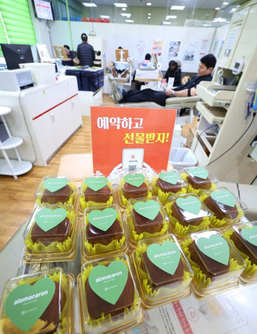 20일 인천 연수구 대한적십자사 인천지사 헌혈의 집 연수센터에서 시민들이 헌혈하고 있다. 최근 겨울철 혈액 부족으로 실시하고 있는 ‘두쫀쿠(두바이 쫀득 쿠키)’ 증정 이벤트가 화제를 모으고 있다. (사진=연합뉴스) |