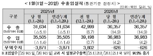 1월 1~20일 수출입실적. (표=관세청) |