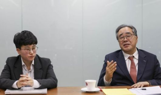 이광수 법무법인 원 파트너 변호사(오른쪽)와 이다예 법무법인 원 변호사가 13일 서울 강남구 법무법인 원에서 인터뷰 하고 있다. 강진형 기자 |