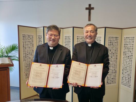 서울대교구에 따르면 지난 14일 서울대교구청 교구장 접견실에서 정순택 대주교와 제주교구장 문창우 주교가 참석해, 최근 제주 지역에 증가하고 있는 난민 신청자들의 안정적인 지원과 제주교구 나오미센터(센터장 이건용 신부)의 지속 가능한 운영을 위한 협력 방안을 논의했다.