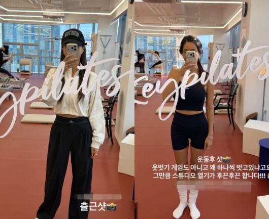 하원미는 20일 자신의 계정에 "출근샷", "레슨 후 샷", "운동 후 샷"이라며 하나씩 탈의해가는 세 장의 사진을 업로드했다.