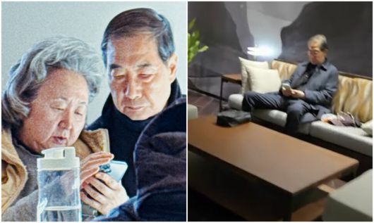 지난 14일 서울 성북구의 한 돈가스 가게에서 목격된 한덕수 전 국무총리(오른쪽)와 부인 최아영(왼쪽)씨. 오른쪽 사진은 14일 서울 중구 웨스틴 조선 호텔 피트니스 센터 입구에서 목격된 한덕수 전 국무총리. 최황 작가 페이스북, 유튜브 방송 ‘매불쇼’ 갈무리 |