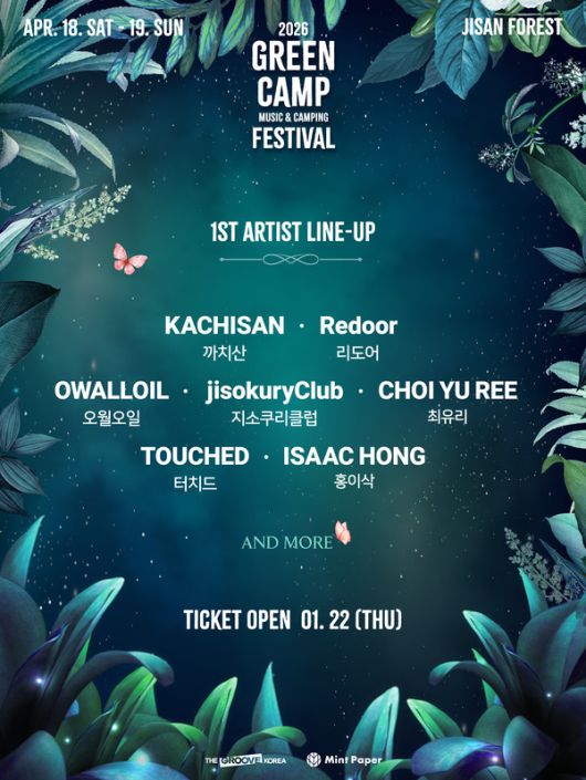 한편, '그린캠프페스티벌 2026'의 공식 티켓 예매는 오는 1월 22일 시작된다. 특히 숲속에서 2박 3일간 캠핑과 공연을 모두 만끽할 수 있는 핵심인 '캠핑티켓'은 'NOL티켓'을 통해 단독으로 오픈되며, 일반 관람을 위한 '일반 티켓'은 다양한 예매처에서 예매 가능하다. 자세한 정보는 공식 SNS를 통해 확인할 수 있다.
