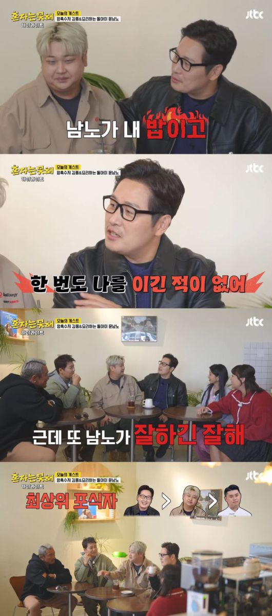 [서울=뉴시스] 만화작가 겸 방송인 김풍과 윤남노 셰프가 지난 20일 방송한 JTBC 예능 프로그램 '혼자는 못 해'에 게스트로 출연했다. (사진=JTBC '혼자는 못 해' 캡처) 2026.01.21. photo@newsis.com *재판매 및 DB 금지 |