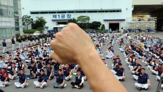 한 자동차 공장의 쟁의 모습. [헤럴드] |