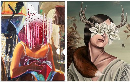 갤러리밈, 불온유희 (不穩遊戱)_한일작가전. (좌) 에노모토 마리코, Women 1, Oil on canvas, 91x72cm, 2025 (우) 정수정, Orange shower, Oil on canvas, 91x72cm, 2021 *재판매 및 DB 금지 |