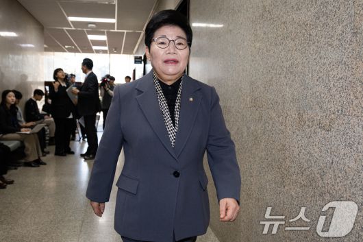 (서울=뉴스1) 유승관 기자 = 임이자 국회 재정경제기획위원장이 21일 서울 여의도 국회에서 송언석 국민의힘 원내대표와 만난 후 원내수석부대표실로 들어서고 있다. 2026.1.21/뉴스1
