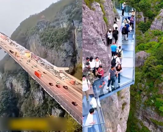 실제 유튜브 등에는 ‘설악산 유리 다리’라는 키워드로 영상 여러 개가 올라와 있다. “세계에서 가장 위험한 다리”, “하늘 위를 걷는 유리 다리” 등의 제목이 달린 영상은 높은 산 사이에 놓인 도로를 자동차들이 질주하거나 깎아지른 절벽을 빙 둘러 놓인 다리 위를 관광객들이 걸어 올라가는 모습을 담았다.