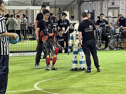 로보컵은 1997년 일본 나고야에서 첫 대회가 열린 이후 매년 개최되고 있으며, 2002년부터는 인간처럼 두 발로 공을 차는 휴머노이드 리그가 추가돼 인기를 끌고 있다.