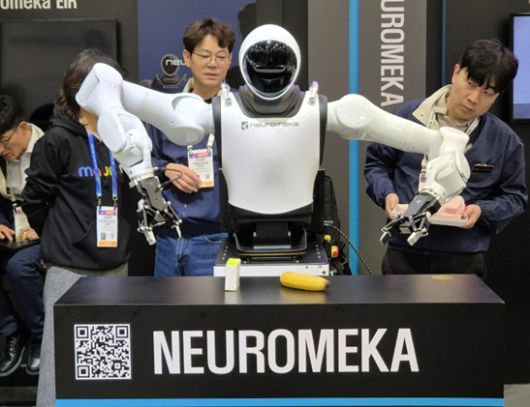 CES2026 현장에서 시연중인 뉴로메카 휴머노이드 'EIR(에이르)' [사진=뉴로메카] |