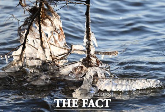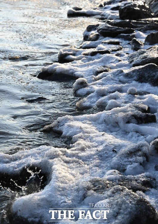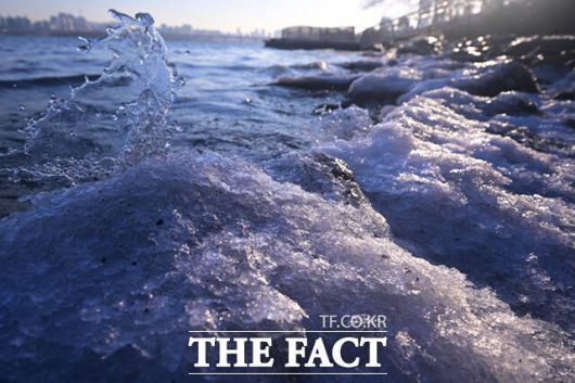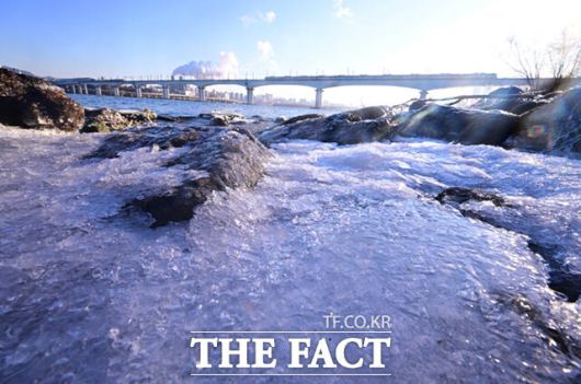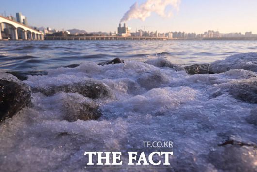 [더팩트ㅣ이새롬 기자] 전국적으로 한파특보가 이어지는 가운데 21일 서울 여의도 한강변에 얼음이 얼어있다.