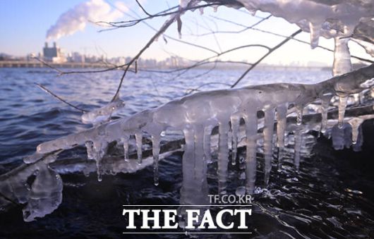 전국적으로 한파특보가 이어지는 가운데 21일 서울 여의도 한강변에 고드름이 얼어있다. |