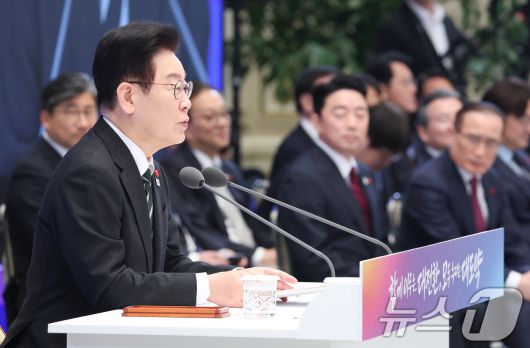 (서울=뉴스1) 이재명 기자 = 이재명 대통령이 21일 청와대 영빈관에서 열린 신년 기자회견에서 발언을 하고 있다. 2026.1.21/뉴스1