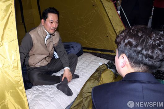 [서울=뉴스핌] 정일구 기자 = 통일교·공천헌금 '쌍특검' 수용을 촉구하며 단식 7일 차를 맞은 장동혁 국민의힘 대표가 21일 오전 서울 여의도 국회 로텐더홀 단식 농성장을 찾은 이준석 개혁신당 대표와 대화하고 있다. 2026.01.21 mironj19@newspim.com