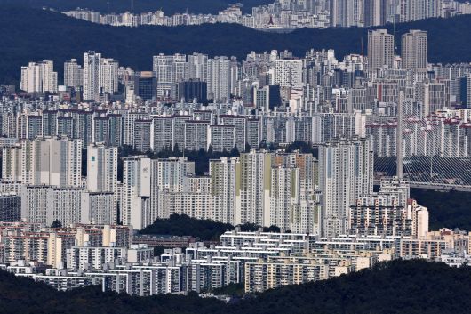 주택도시보증공사(HUG)가 보증한 법인 임대보증금의 보증 사고액과 HUG가 대신 갚아준 보증금(대위변제액)이 지난해 역대 최고치를 경신한 것으로 나타났다. 사진은 경기 광주시 남한산성에서 내려다본 서울의 아파트 단지 모습./뉴스1 |