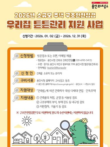 용인시, 소규모 주택 구조 안전점검 '우리집 튼튼관리 지원 사업' 포스터 |