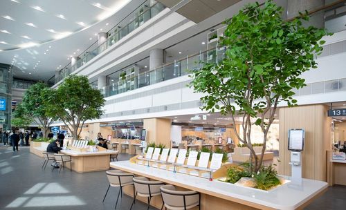 민원실 중앙에 마련한 '쉼터'와 '그늘터'에는 대기 시간을 편안하게 보낼 수 있도록 휴게형 가구와 수직정원(파노라마 그린월)을 배치했다.
