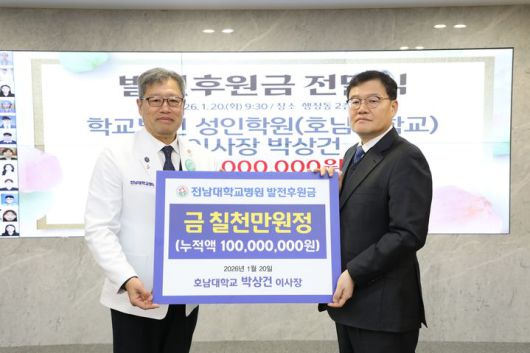 [광주=뉴시스]변재훈 기자 = 전남대병원은 학교법인 성인학원 호남대학교 박상건 이사장이 발전후원금 7000만원을 기탁했다고 21일 밝혔다.