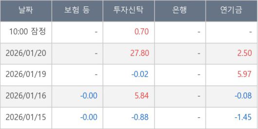 [표] 주요 기관별 순매매량 (단위 만주)