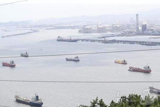 25일 울산 동구 울산항 부근 해상에 수출 선박이 오가고 있다.2025.8.25/뉴스1 ⓒ News1 DB |
