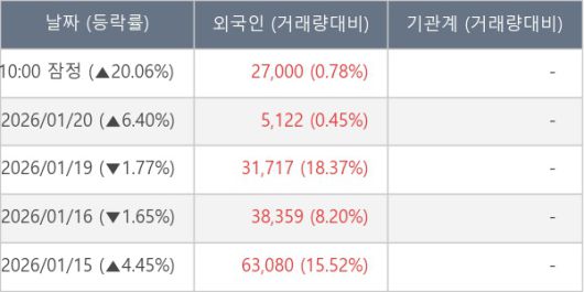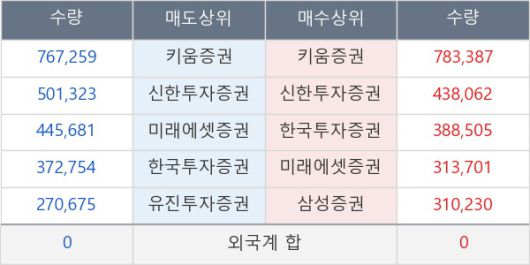 [표] 외국인ㆍ기관 순매매량 (단위 주)