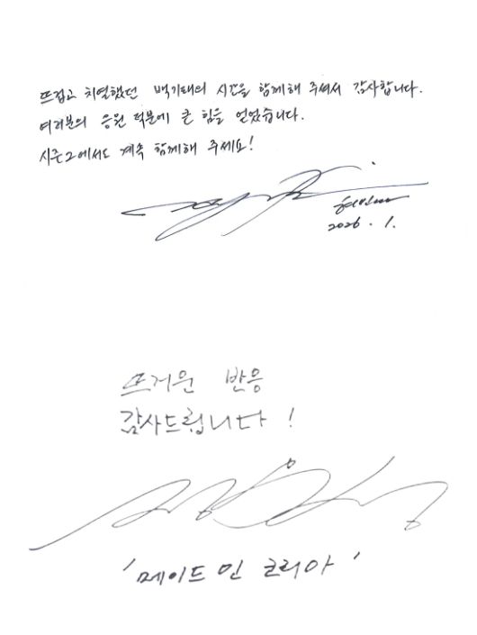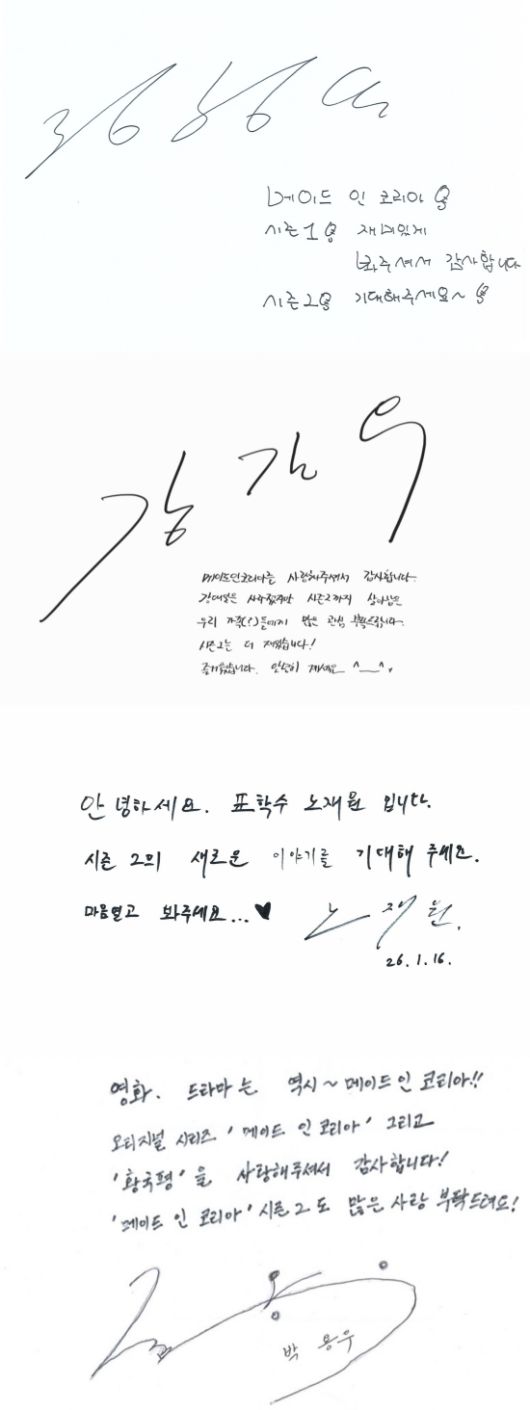 (엑스포츠뉴스 황수연 기자) '메이드 인 코리아' 주역들이 친필 감사 메시지 공개했다.