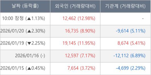 [표] 외국인ㆍ기관 순매매량 (단위 주)