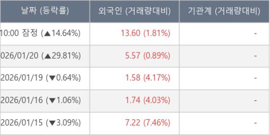 [표] 외국인ㆍ기관 순매매량 (단위 만주)