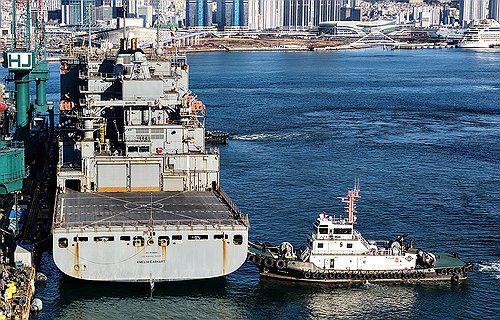 미국 해군함정 HJ중공업 영도조선소 입항 |