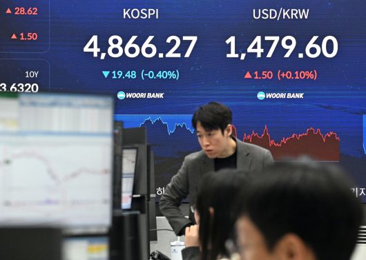 이날 오전 10시 11분 기준 코스피는 전장보다 8.64포인트(0.18%) 오른 4894.86을 기록하고 있다. 지수는 전장보다 76.81포인트(1.57%) 내린 4808.94로 출발해 낙폭을 줄이다 소폭 상승 전해 4900선에 다시 바짝 다가섰다.