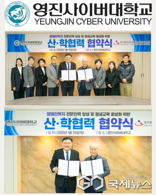 이에 영진사이버대학교에 다르면, "20일 이 대학교 회의실에서 대구광역시지적발달장애인복지협회(협회장 정병주)와 산학협력 협약을 체결하고 지적·발달장애인의 교육 및 복지 증진에 나선다"고 전했다.