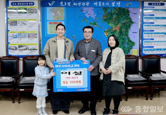 충남 보령시는 지난 20일 시장실에서 이지원 씨와 배우자 고가슬 씨, 그리고 딸 이설 양이 참석한 가운데 '희망 나눔 캠페인' 성금 전달식을 가졌다.