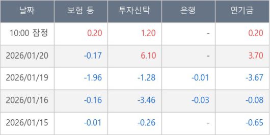 [표] 주요 기관별 순매매량 (단위 만주)