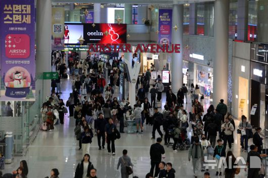 [인천공항=뉴시스] 이영환 기자 = 16일 오전 인천국제공항 제1여객터미널 면세구역에서 여행객들이 오가고 있다.한국면세점협회에 따르면 올해 들어 10월까지 국내 면세점 매출은 73억달러(약10조원)로 집계됐으며 작년 같은 기간보다 16.6% 급감했다. 올해 연간 시장 규모는 2015년(약81억달러) 이후 최저치를 기록할 것으로 전망된다. 한국문화관광연구원의 작년 외래 관광객 조사에 따르면 외국인의 주요 쇼핑 장소로 거리 상점을 꼽은 비율은 49.6%에 달했다. 반면 공항 면세점 이용률은 14.2%에 그쳐 2019년(33.5%) 대비 절반 이하로 뚝 떨어졌다, 2025.12.16. 20hwan@newsis.com |