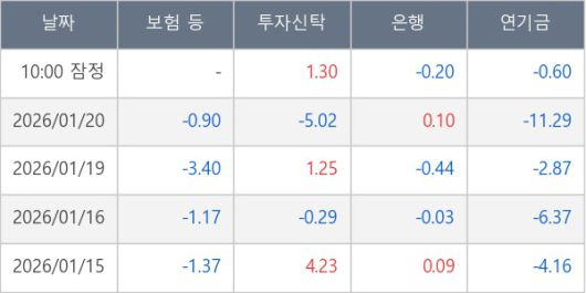 [표] 주요 기관별 순매매량 (단위 만주)